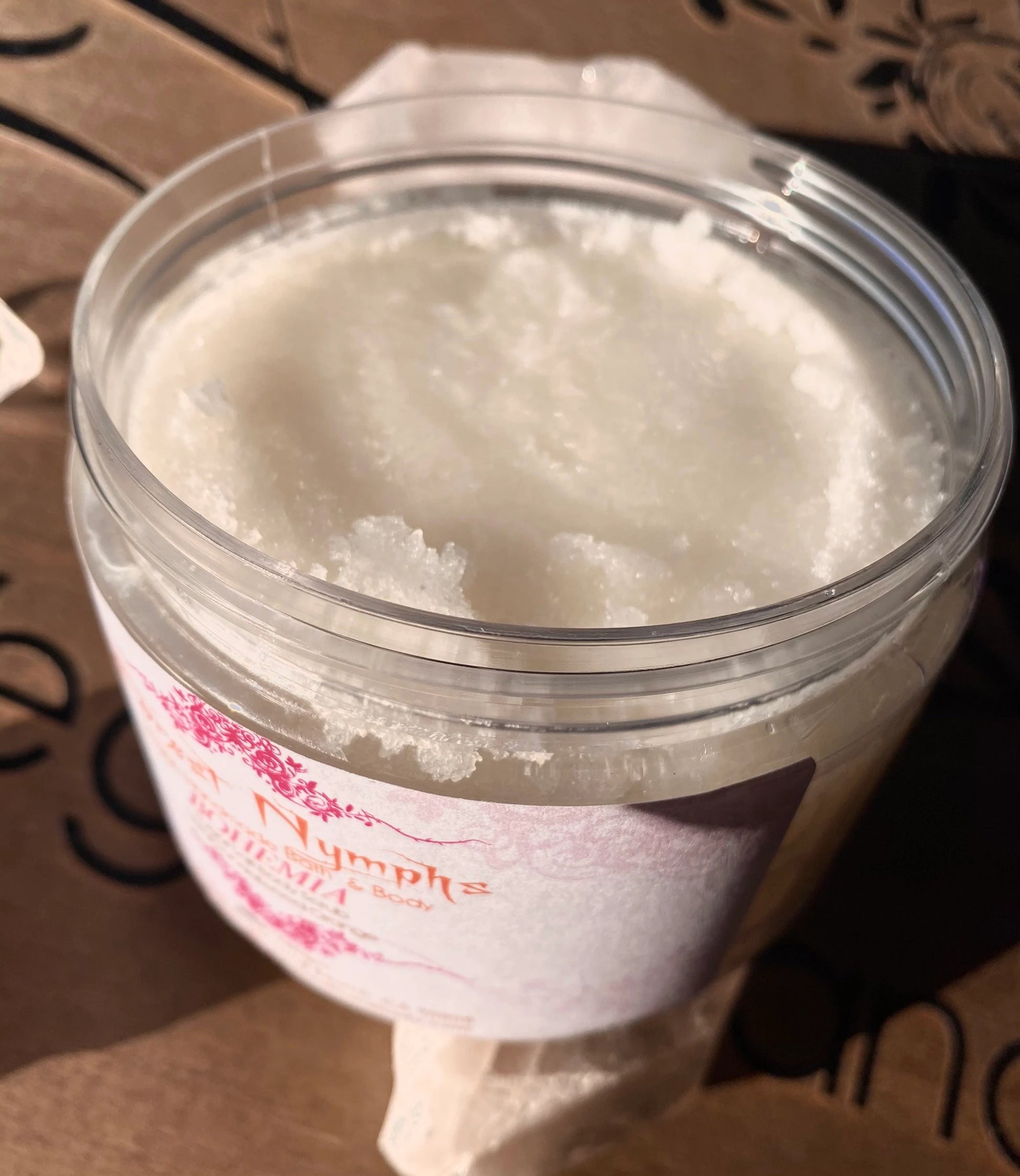 Made with sugar and salt, coconut oil, pure essential oils, gemstone and reiki infused