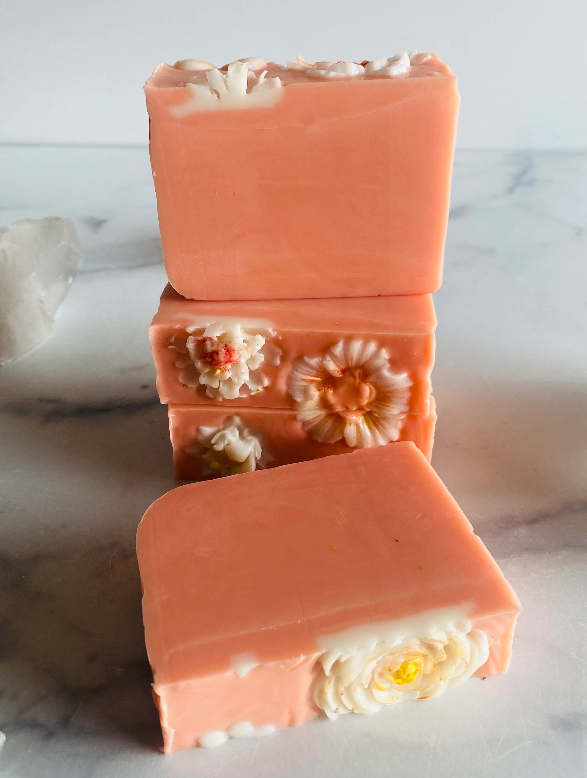 Ingredients- olive oil coconut oil Shea butter essential oils phthalate free fragrance oil sodium hydroxide floral Hydrosol mineral pigment mica color